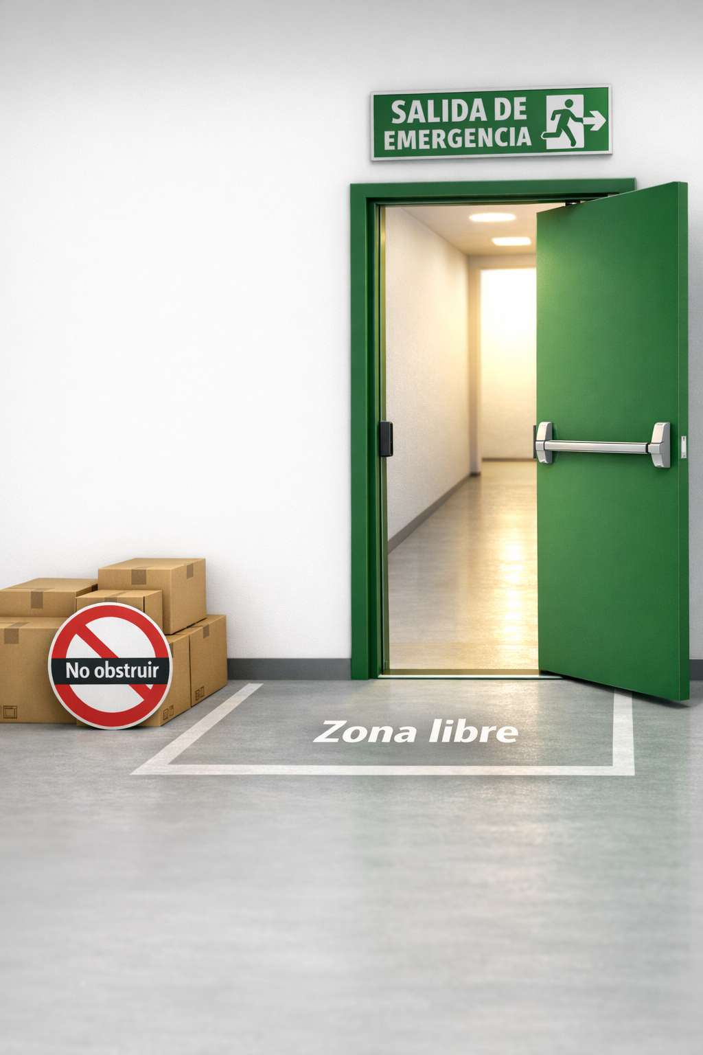 - Área libre frente a la puerta (sin muebles ni mercancía)